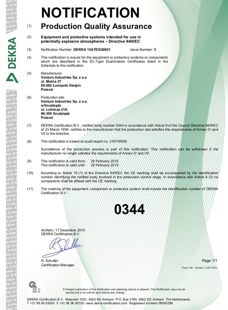 In 2018, the quality management system was updated, Venture Industries was certified in accordance with ISO 9001:2015.